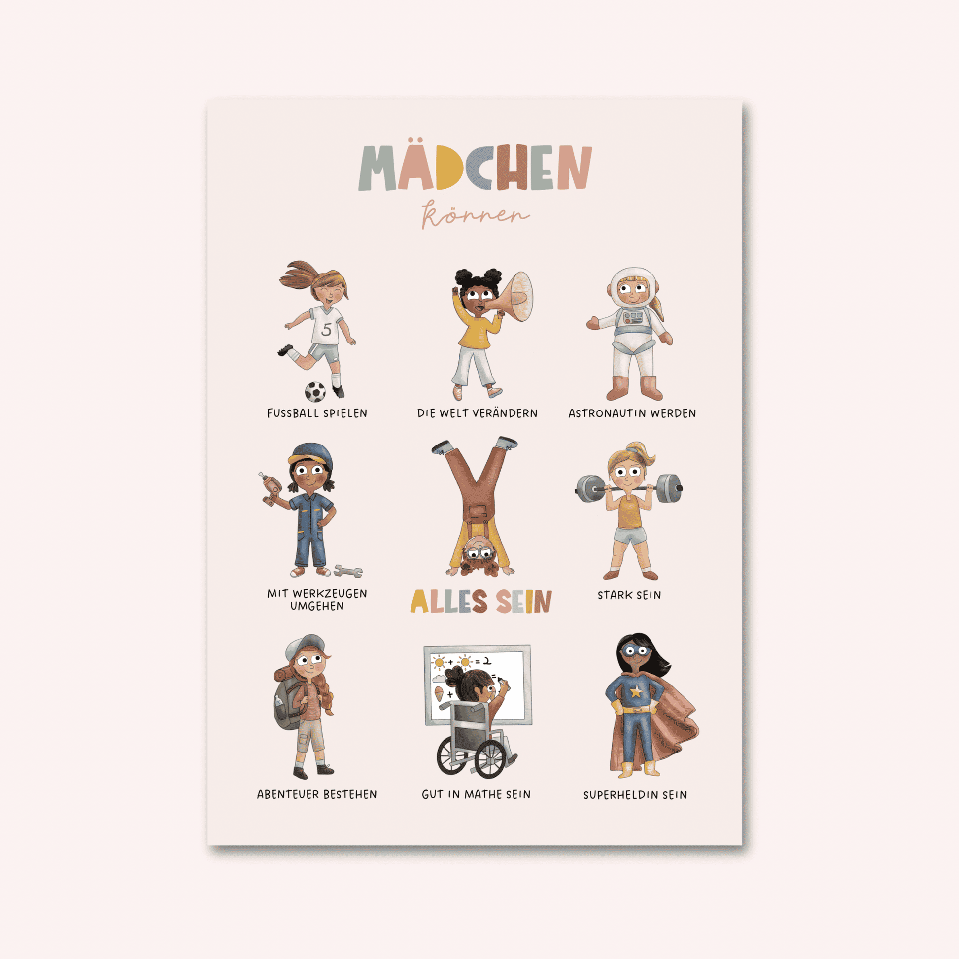 Mädchen können alles sein! Eine bezaubernde Postkarte für alle kleinen und großen Mädchen.
